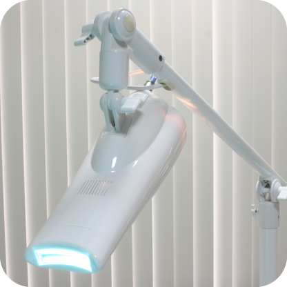 “過酸化水素”を利用して歯の着色物質を分解し歯を白くします。可視光線をあてることで約40分で歯が白くなります。ホームホワイトニングと併用することで効果が高まります。